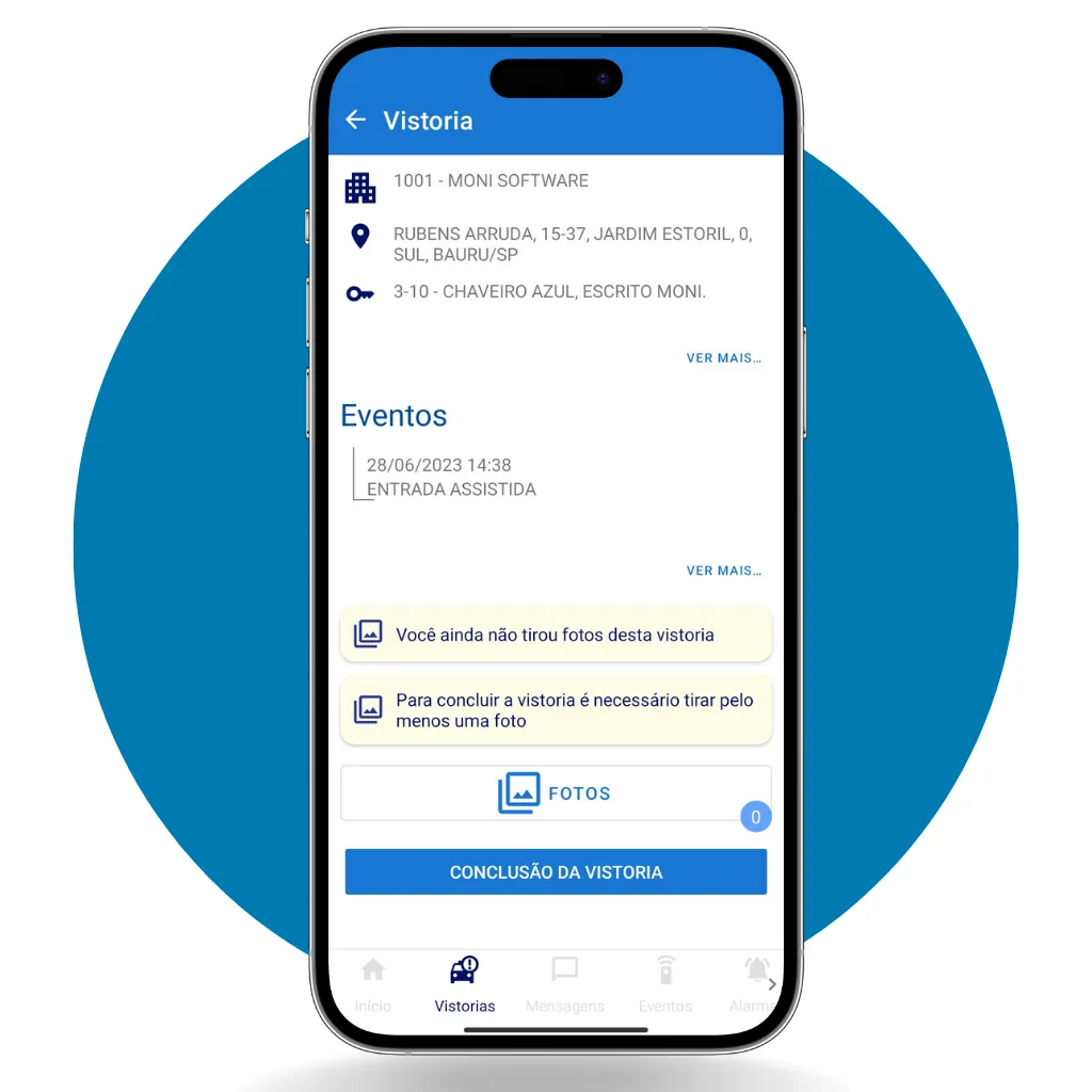 O Moni Mobile possui a função de rastreamento do vistoriador, portanto todo o percurso feito até o local ficará registrado na ocorrência, assim como as fotos e a conclusão da vistoria.